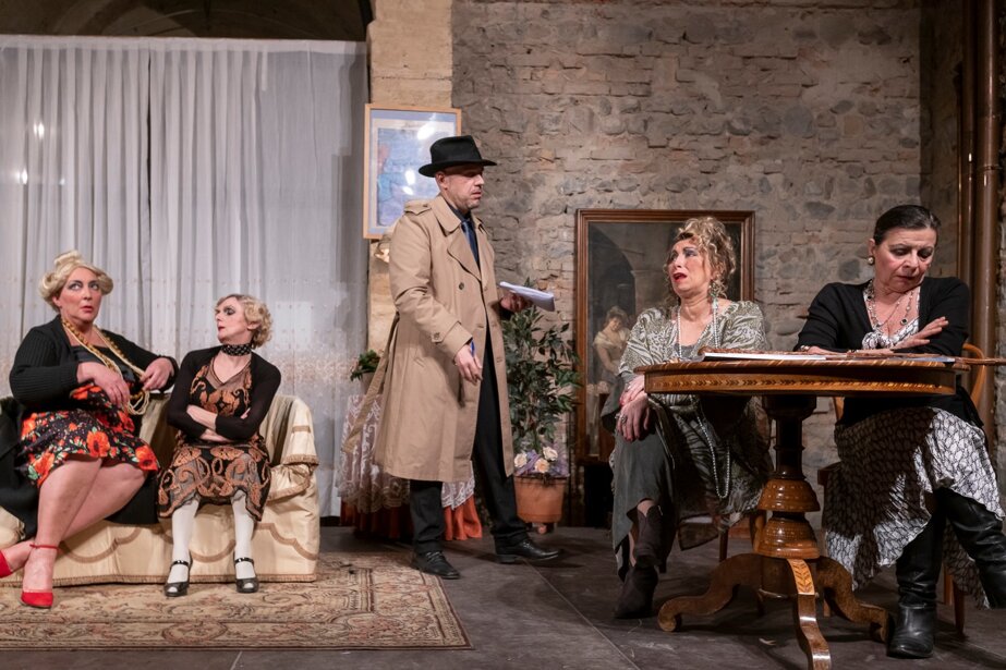 Una storia dove si fondono il rosa di allegri e divertenti ricordi delle ex “ signorine” , il noir di un omicidio e il giallo che il commissario Mascari dovrà risolvere. Una storia spregiudicata, che a ben guardare fa riflettere sullo sfruttamento della prostituzione, ma supportata dal ritmo incalzante delle battute e dalla versatilità comica delle protagoniste. Per un’ora e mezza di spettacolo si ride, per le situazioni e i colpi di scena imprevedibili ed esilaranti, e l’energia spumeggiante delle attrici.